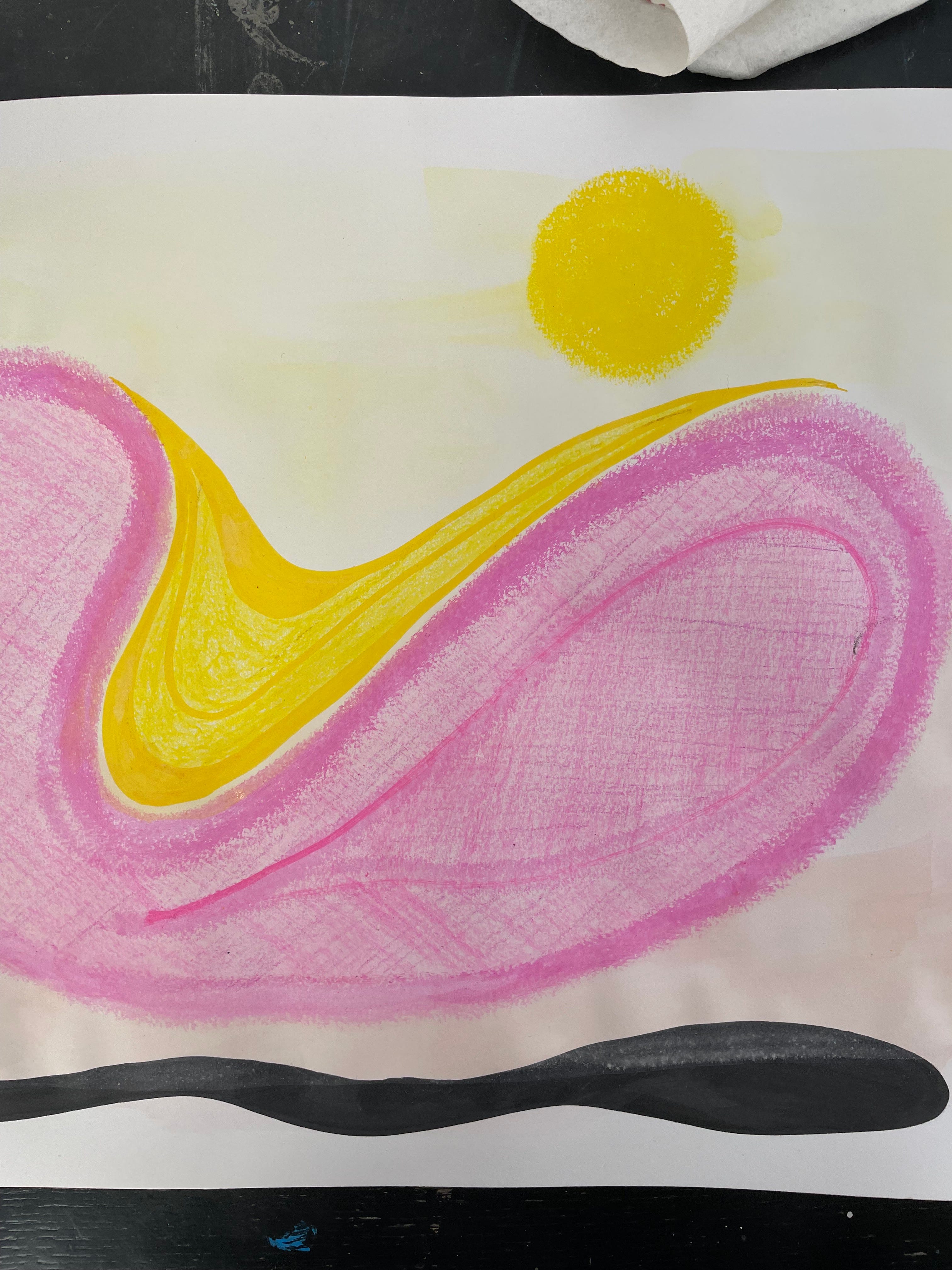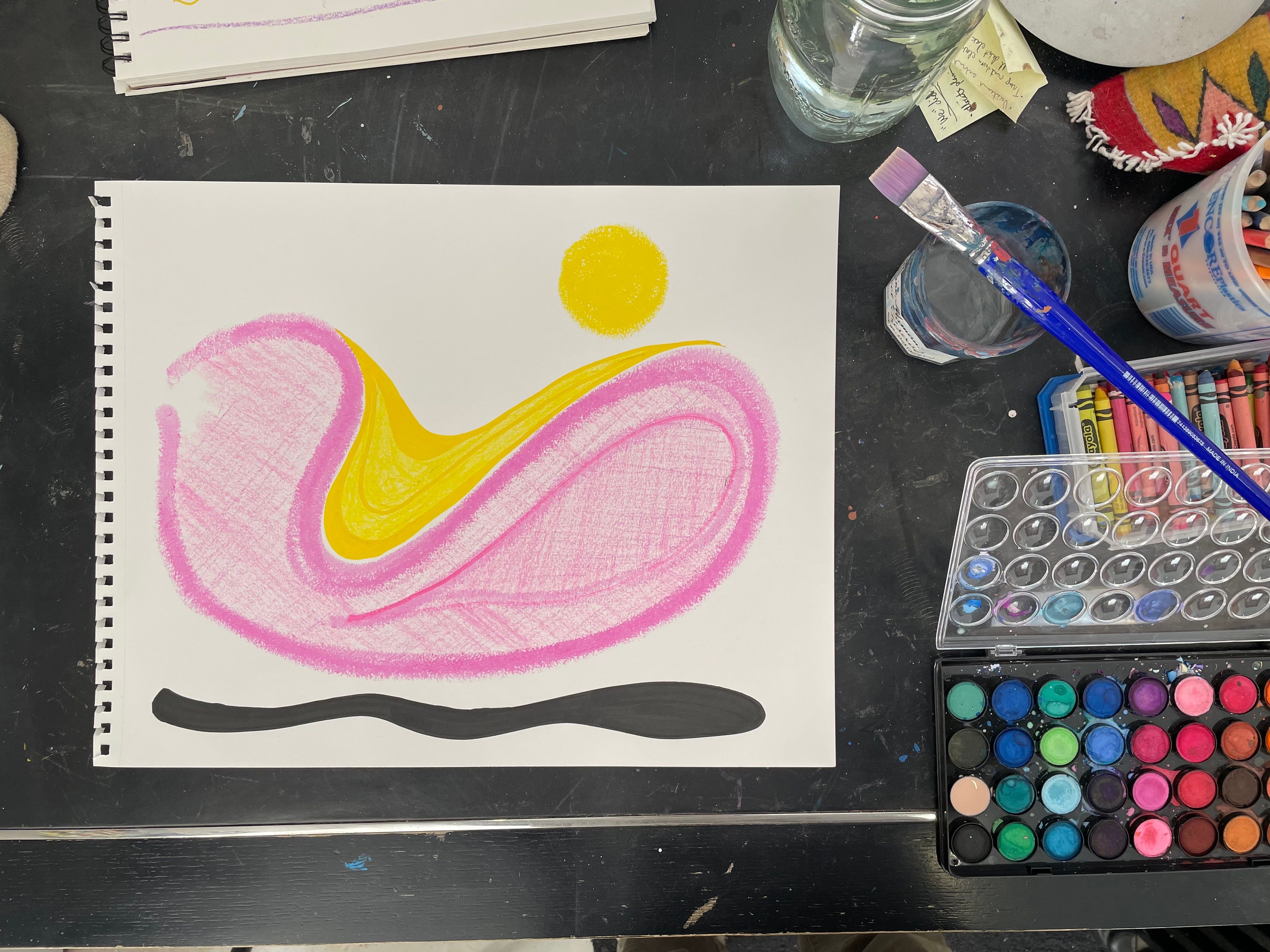 I got into a little mixed media action making who knows what. It’s an ungrounded combo of paint sticks, posca pens, water colors, and graffiti markers: