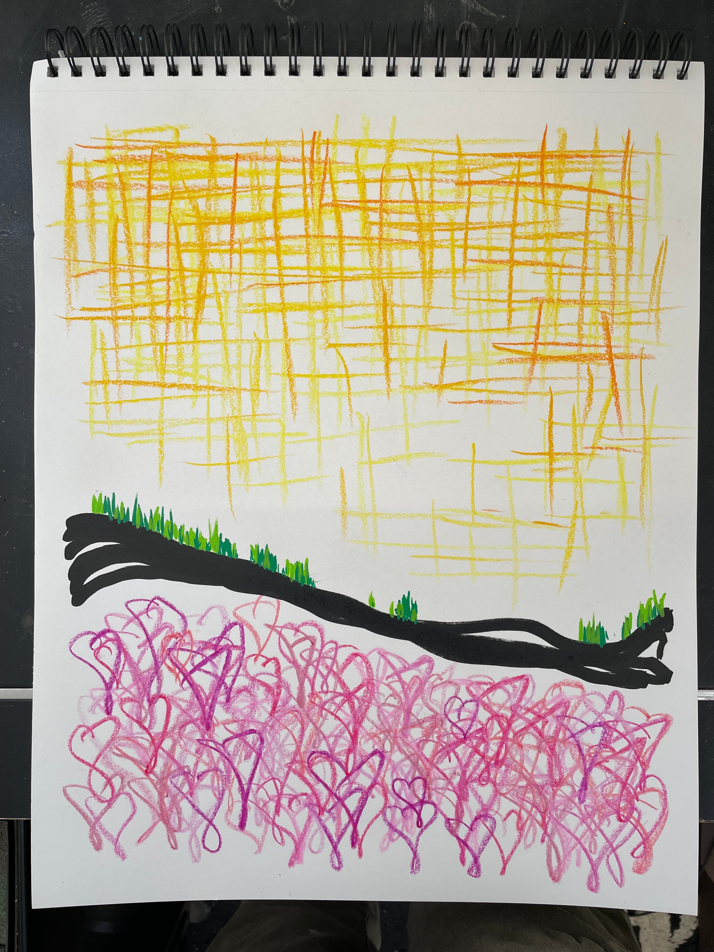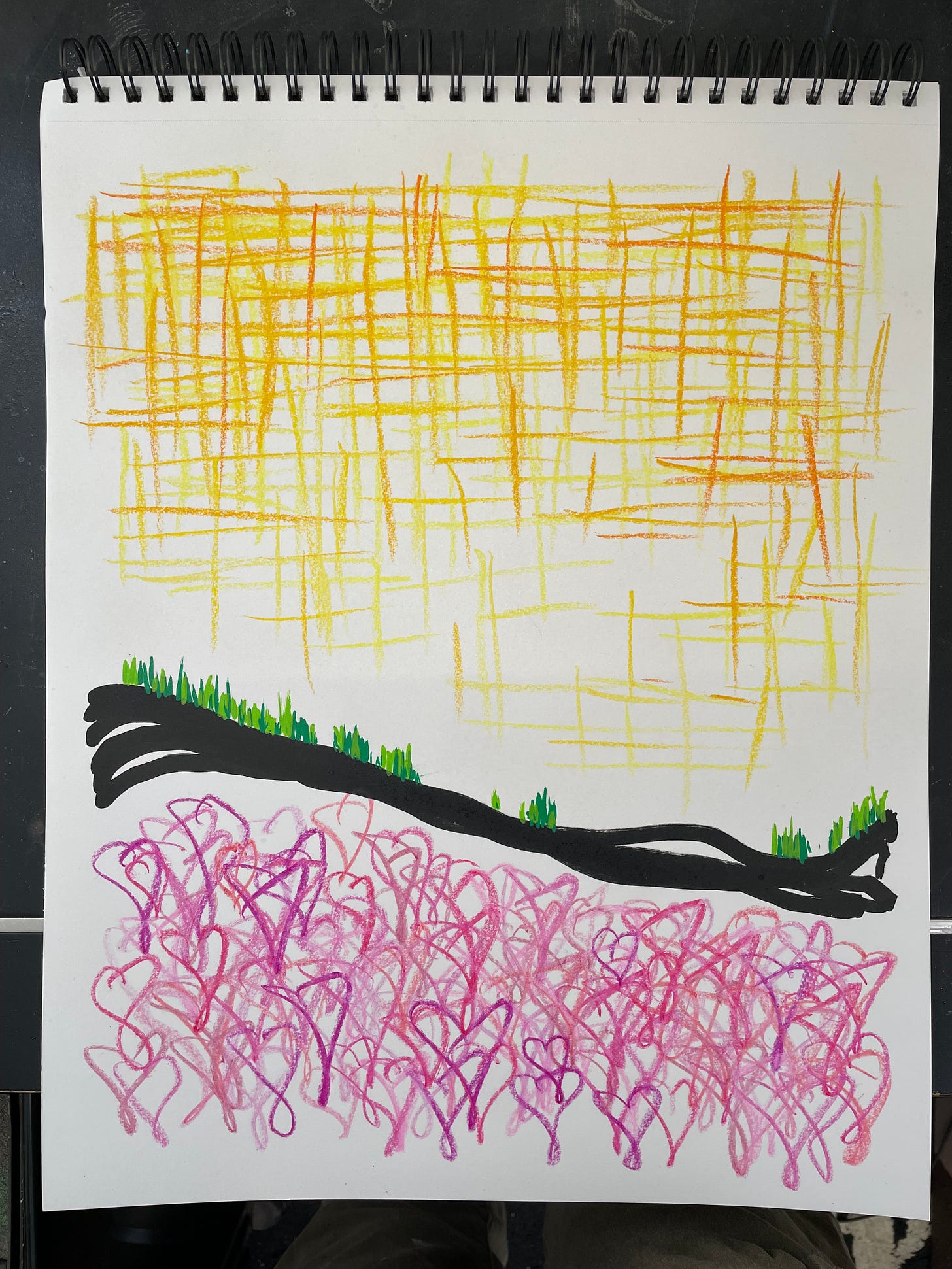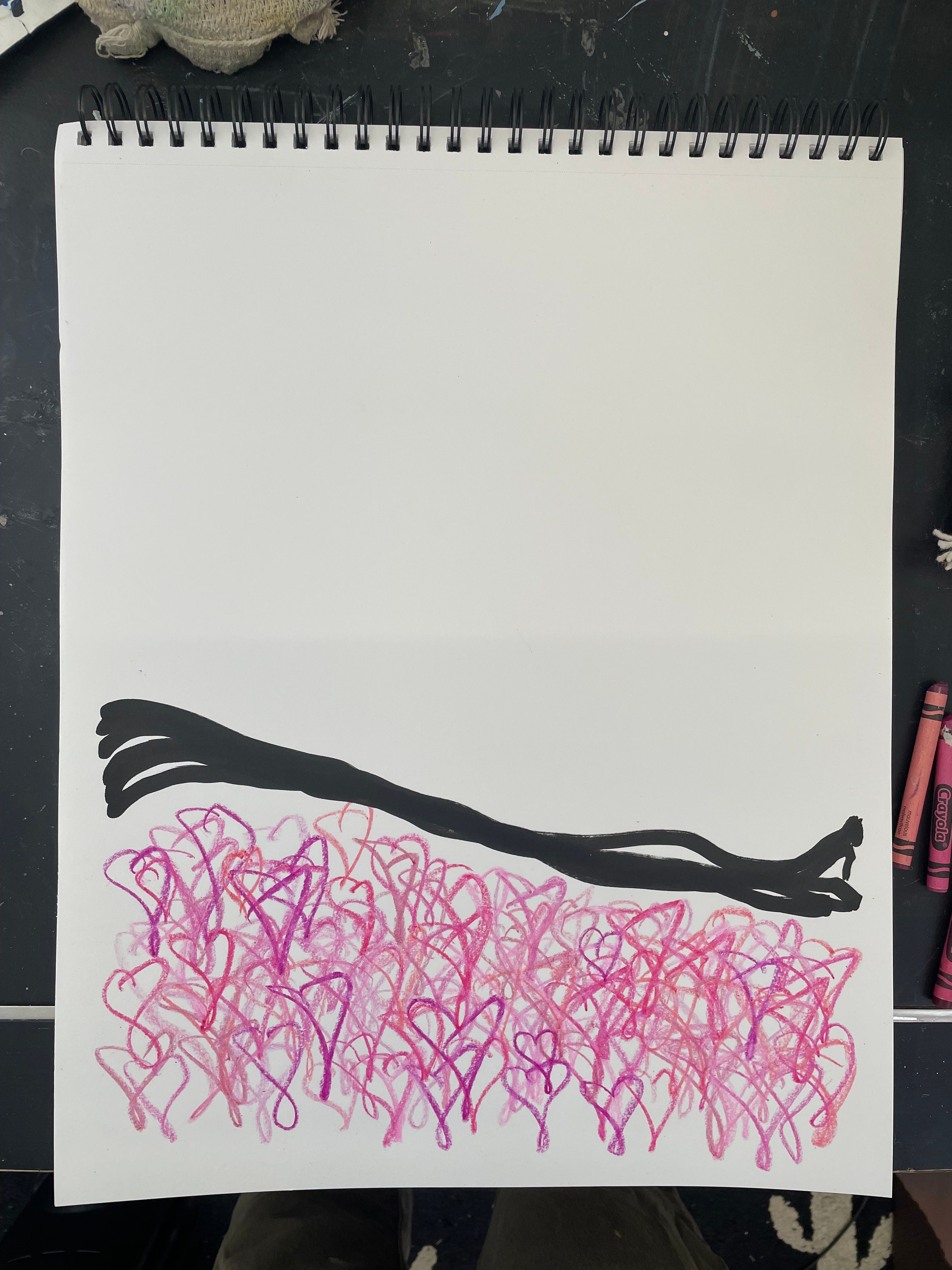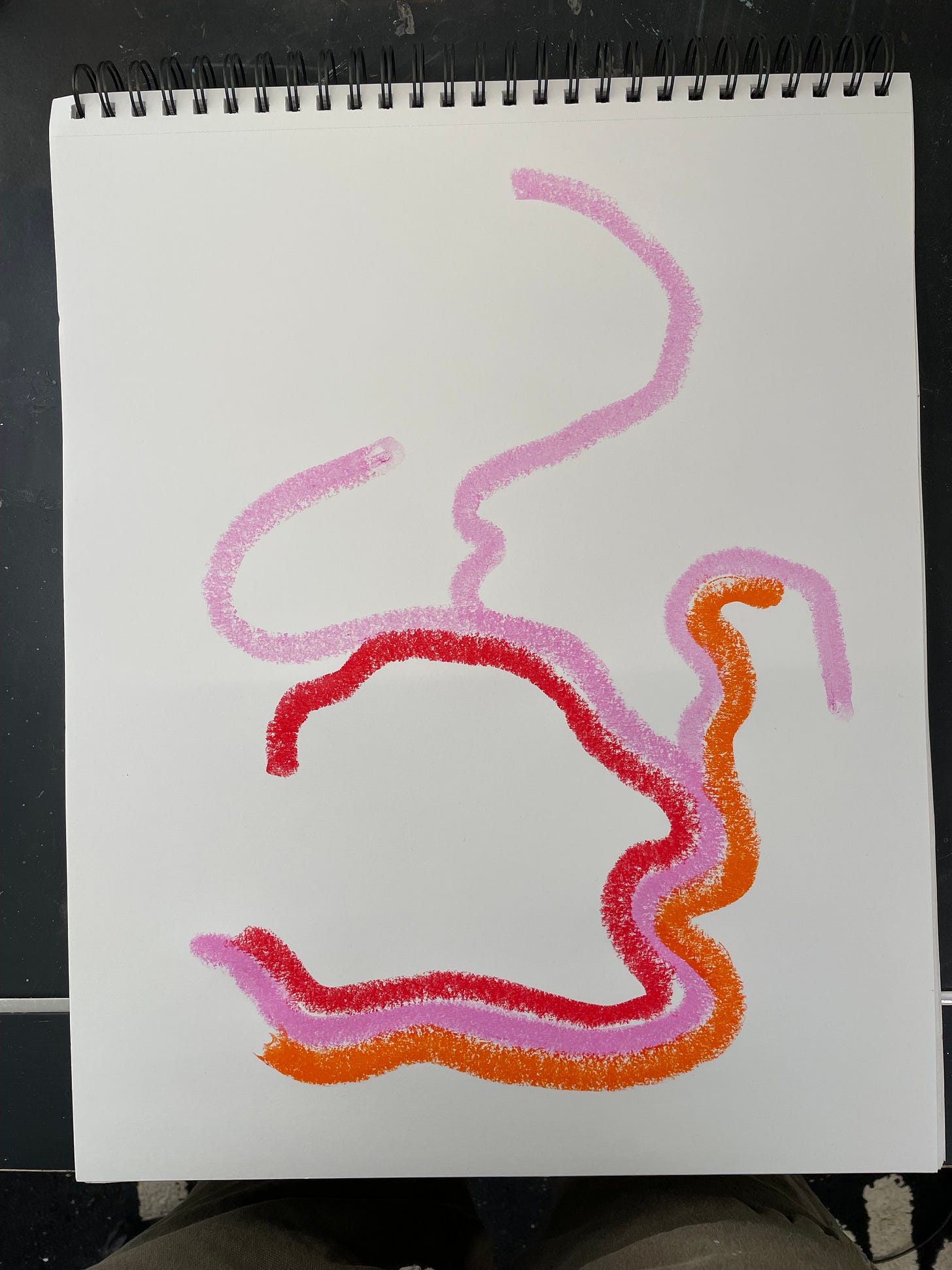 I hadn’t played with the paint sticks in many days, and my arm let these waggly paths make their way onto the paper: